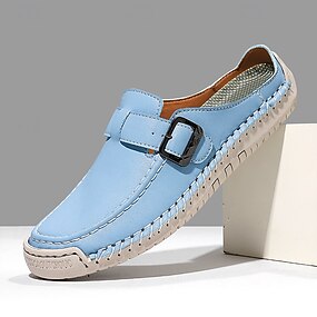 Mocassins masculinos de couro sintético com fivela – sapatos leves e macios, sem fecho, com sola flexível, perfeitos para viagens, uso casual diário e lazer de verão.