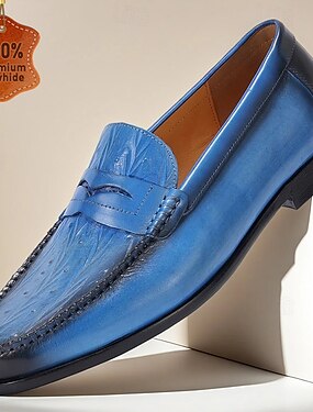 Sapatos masculinos de couro azul com padrão de crocodilo – mocassins de luxo para homens estilosos em festas de verão e eventos em resorts
