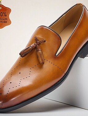 mocassins masculinos de couro sintético marrom com borlas – sapatos sociais clássicos com charme vintage, ideais para eventos formais e trajes casuais de negócios