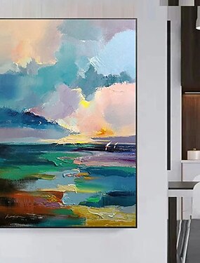 Pintura a óleo feita à mão, representando o glorioso nascer do sol, uma pintura artística para decoração de parede de sala de estar, pintura de paisagem, arte abstrata para parede, pintura de paisagem