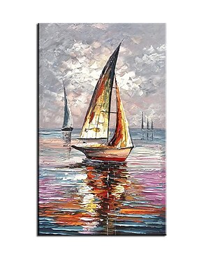 Pintura a óleo feita à mão arte de parede pintada à mão moderno veleiro abstrato seascape decoração de casa decoração moldura esticada pronto para pendurar