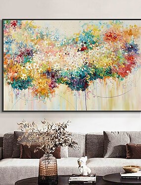 Pinturas abstratas de flores feitas à mão em tela, estilo Mintura, decoração de parede, quadros modernos para decoração de casa, pintura enrolada sem moldura e sem esticar.