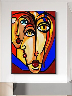 Pintura a óleo pintada à mão arte da parede contemporânea estilo picasso pessoas abstrata decoração para casa decoração moldura esticada pronta para pendurar