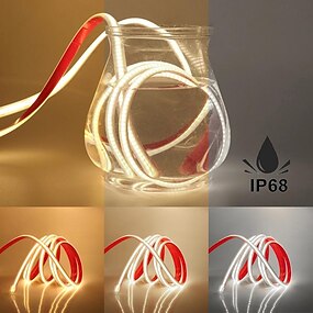Tira de led cob flexível à prova d'água com interruptor tira de luz para piscina 220v ue reino unido plugue de alimentação 288leds/m cob autoadesivo de alta densidade led strp 1/2/3/4/5m