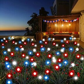 2pcs Luzes de Grama Solar de Vaga-lume Patrióticas para o Dia da Independência de 4 de Julho 250ª Aniversário do Dia da Memória Luz Decorativa de Jardim ao Ar Livre à Prova D'Água Luzes Estelares que