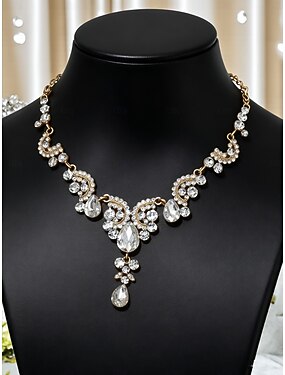 Colar de cristal em forma de lágrima para mulheres, joias elegantes de strass vintage para bailes de Gatsby, casamentos &festas noturnas