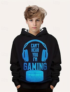 Unisexo 3D Gráfico Jogo Moletom Pullover Manga Longa Impressão 3D Primavera Outono Esportes Moda Roupa de rua Infantil 4-12 anos Com Capuz Casual Diário Ao ar livre Normal