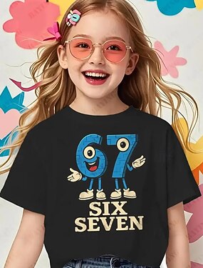 Para Meninas 3D Gráfico Letra Camisa Camiseta Manga Curta Impressão 3D Verão Primavera Esportes Moda Roupa de rua Infantil 4-12 anos Gola Redonda Casual Diário Ao ar livre Normal