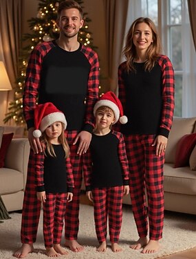 Olhar de família Pijamas Xadrez Casa Patchwork Vermelho Manga Longa Ativo Roupas Combinando