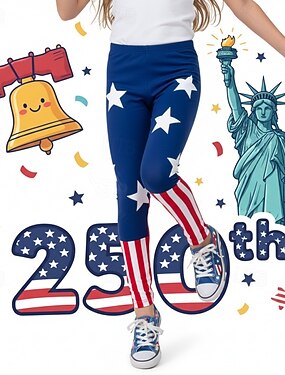 Para Meninas 3D Gráfico Bandeira Calças Leggings Impressão 3D Primavera Outono Roupa de rua Básico Infantil 4-12 anos Casual Diário Ao ar livre Delgado