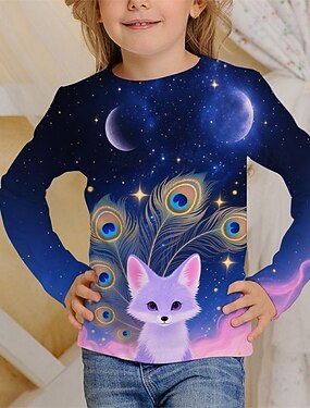 Para Meninas 3D Animal Camisa Camiseta Manga Longa Primavera Outono Moda Básico Infantil 4-12 anos Gola Redonda Ao ar livre Casual Diário Normal