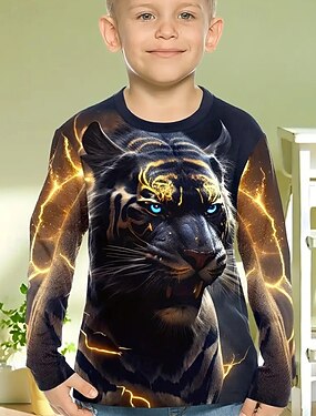 Para Meninos 3D Gráfico Animal Tigre Camisa Camiseta Manga Longa Primavera Outono Moda Básico Infantil 4-12 anos Gola Redonda Ao ar livre Casual Diário Normal