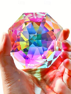 Cristal apanhador de sol arco-íris de 7,5 cm para janelas, grande e colorido, com contas de cristal octogonais, prisma para uso interno e externo.