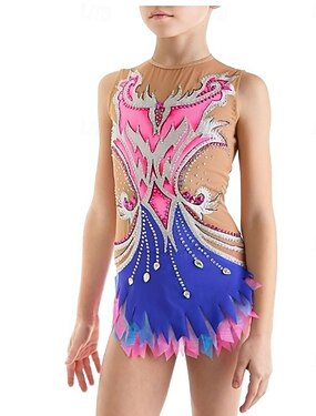 Collant de ginástica rítmica feminino para patinação no gelo, tingido, de alta elasticidade, para competição profissional, com cristais/strass e mangas compridas.