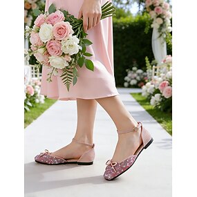 Sapatilhas de ballet femininas rosa com strass - sapatos de salto baixo com laço brilhante no tornozelo, ideais para damas de honra e para uso externo no jardim. &cerimônia de casamento no gramado