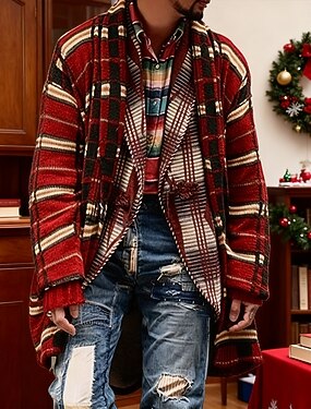 Homens Suéter Sueter Cardigan Estriado Tricotar Cropped Tricotado Xadrez Decote V à moda Básico Ao ar livre Diário Roupa Outono Inverno Vermelho M L XL