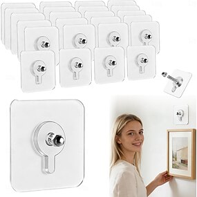 Ganchos adesivos sem furos, 20 unidades, para pendurar quadros sem pregos, ganchos de parede adesivos com parafuso, ideais para pendurar na parede sem pregos, perfeitos para cozinha, banheiro e casa.