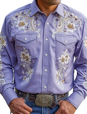 Homens Estampa floral Flores Camisa Social Camisa de gola alta Manga Longa Casual Férias Roupa Diária Para Noite Primavera Outono Colarinho Mandarim Faixa Botão para baixo Camisa tipo linho Azul