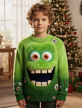 Natal Para Meninos 3D Floco de Neve Elfo Suéter de Natal Feio presente de Natal Suéter Manga Longa Impressão 3D Outono Inverno Moda Festa Infantil 4-12 anos Gola Redonda Ao ar livre Diário Normal