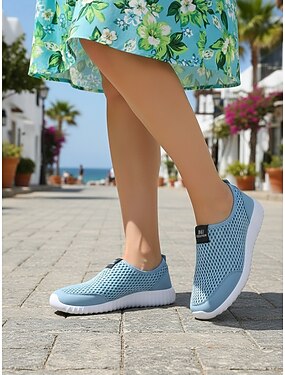 Tênis feminino slip-on azul claro em mesh respirável – tênis leves para atividades ao ar livre, como caminhadas, trilhas, viagens e uso diário.