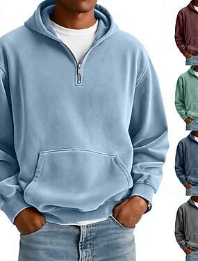 Homens Moletom Moletom com capuz Quarter Zipper Hoodie Vermelho Vinho Verde Claro Azul Marinha Cinza Claro Azul Claro Com Capuz Tecido bolso canguru Desportos e Ar livre Casual Diário Vintage Roupa