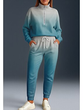 Mulheres Moletom Agasalho de 2 peças Conjuntos de moletom Com Cordão Bolsos Cores Gradiente Conjunto de roupa atlética Conjuntos Outono Inverno Rosa claro Vocação Exterior Viagem Leve Da Moda Manga