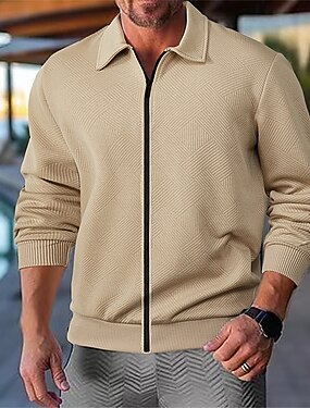 Homens jaqueta leve Jaqueta casual Férias Diário Respirável Bolsos Jacquard Primavera Outono Tecido Moda Clássico Lapela Padrão Preto Branco Azul Marinha cáqui Cinzento Claro Casaco