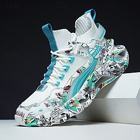 tênis de cano alto com padrão de grafite masculino – calçados esportivos coloridos de streetwear com fecho de cadarço, parte superior de malha respirável para uso casual e esportivo