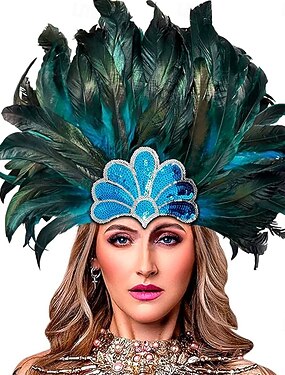 Carnaval 2026 Acessórios de Samba do Carnaval do Rio Adereços de Plumas para Mulheres - Adereço de Cabeça em Lantejoulas Azul e Verde de Pavão Custo de Performance do Festival do Brasil
