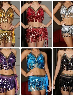 Dança do Ventre Blusa Moedas de Ouro Lantejoula Paetês Mulheres Espetáculo Treino Fibra de Leite