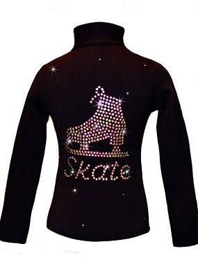 Top de patinação artística feminino, jaqueta de patinação no gelo preta com patchwork, em elastano elástico, para treino e competição, roupa térmica e quente, clássica, manga comprida, para patinação artística.