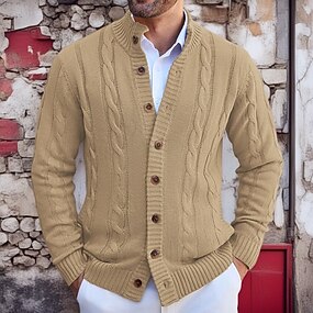 Homens Suéter Vestido Suéter Sueter Cardigan Waffle Tricotar Cropped Tricotado Colarinho Chinês Roupa Outono Inverno Azul Marinha Marron XS S M