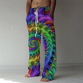 Homens Calças Calça verão Calças de praia Com Cordão Cintura elástica Perna reta Abstrato Estampas Abstratas Conforto Respirável Casual Diário Feriado Roupa de rua Designer Verde Arco-íris