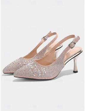 Sapatos de salto alto slingback com strass para mulheres – elegantes scarpins de bico fino e salto agulha para festas de coquetel. &eventos noturnos