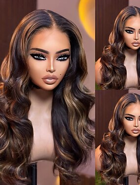 Peruca de renda frontal 13x4, cor natural, mechas, ruivo, onda do corpo, peruca de renda, densidade 200%, para mulheres negras, cabelo humano longo