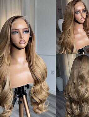 Peruca de cabelo humano com lace frontal colorida e mechas, repartição livre, cabelo brasileiro ondulado loiro castanho multicolorido, sem cola, fecho 5x5 com baby hair/balayage, linha capilar natural