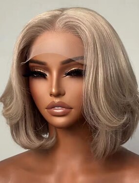 Peruca feminina 100% cabelo humano virgem sem cola, com fecho 5x5, lace frontal 13x4, corte bob curto, ombré brasileiro, cabelo liso loiro acinzentado com baby hair e linha capilar natural.