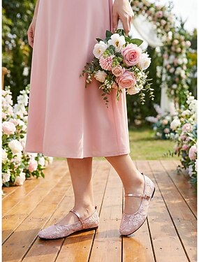 Sapatilhas femininas rosa de renda - sapatos confortáveis para damas de honra em casamentos ao ar livre.