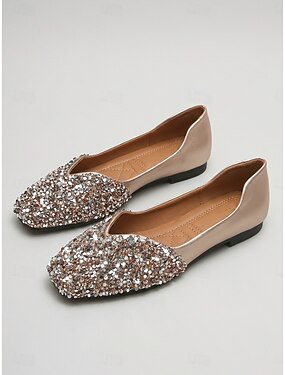 Sapatilhas femininas champanhe com strass, modelo slip-on, elegantes e fáceis de calçar, ideais para a mãe da noiva ou para casamentos no jardim. &eventos formais