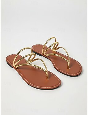 Sandálias femininas chiques douradas de dedo - chinelos minimalistas metálicos com tiras finas, ideais para férias na praia e resorts de verão. &relaxamento à beira da piscina