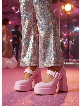Sandálias plataforma rosa femininas com tira de fivela – estilo retrô chique para o Dia dos Namorados, festas e ocasiões especiais.