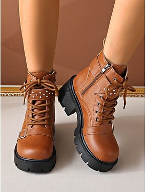 botas plataforma grossas com cadarço, fivela e punho de renda, disponíveis em várias cores