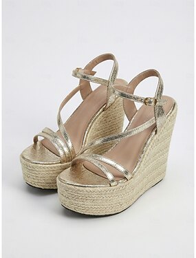Sandálias espadrille femininas douradas com plataforma - calçado de verão confortável com sola de palha trançada, ideal para férias em resorts. &jardim tropical