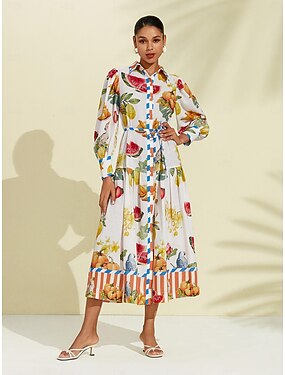vestido camisa midi com estampa de frutas