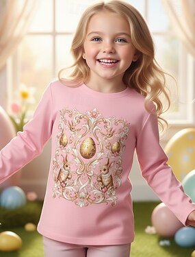 Páscoa Para Meninas 3D Gráfico Coelho Camisa Camiseta Manga Longa Impressão 3D Primavera Outono Esportes Moda Roupa de rua Infantil 4-12 anos Gola Redonda Casual Diário Ao ar livre Normal