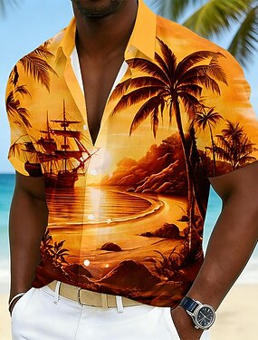 Homens Coqueiro Natureza e Paisagem pôr do sol Camisa havaiana Camisas tropicais Camiseta Aloha Manga Curta Havaiana férias na praia Verão Primavera Aberto para a Lateral Impressão 3D Camisas de