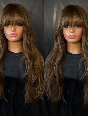 Mistura do cabelo humano Peruca Médio Onda Natural Parte lateral Corte em Camadas Corte Assimétrico Com Franjas Loiro Fantasias Modelador e modelador Riscas Naturais Sem Touca Cabelo da Birmânia