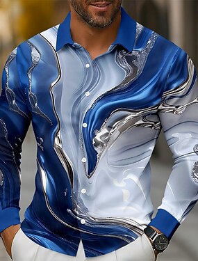 Homens Geométrica Mármore Arte Líquida Abstrata Camisa Social camisa de botão Manga Longa Moda Casual Ao ar livre Dia a Dia Primavera Outono Aberto para a Lateral Impressão 3D camisas de colarinho