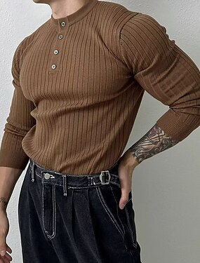 Homens Camiseta Camisa Henley Manga Longa Gola Redonda Verão Primavera Outono Côr Sólida Roupa de rua à moda Casual Patchwork Botões Casual Diário Ao ar livre Marron Escuro Branco Preto Top Tee para