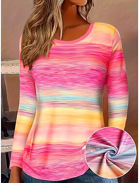 Mulheres Camiseta Imprimir Âmbar Gráfico Cores Gradiente Vintage à moda Clássico Manga Longa Gola Redonda Decote Redondo Tops regulares Diário Rosa Primavera Outono Inverno